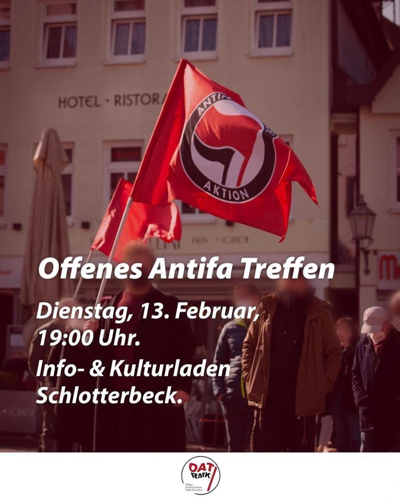 Wenn auch Du etwas gegen die stärker werdenden Nazis auf der Straße und den Parlamenten tun möchtest, antifaschistische Gedenkkultur stärken willst, dann komm jetzt am Dienstag 12. November um 19 Uhr zum Offenen Antifa Treffen im Info- und Kulturladen Schlotterbeck (Mayenner Str. 14 in Waiblingen)!